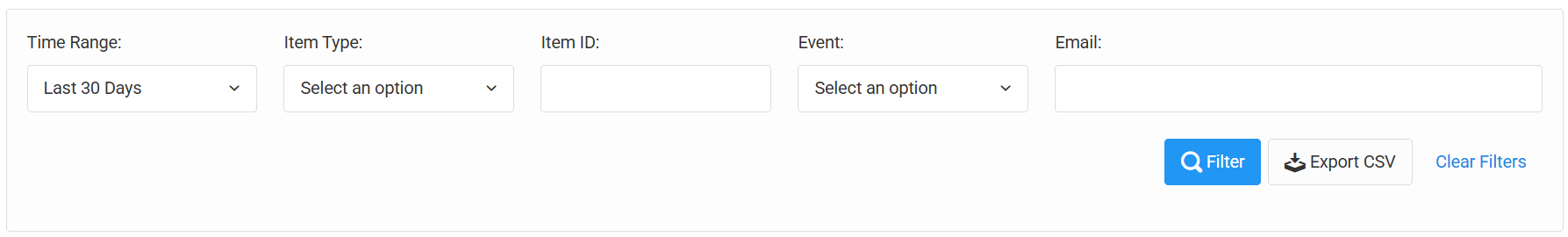 - Item Type: Filter by the specific resource modified, such as Campaign, Link, Preset, ApiKey, or CustomDomain.
