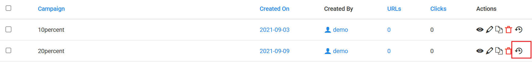 - Click on the View Audit Logs icon next to that campaign to see all changes made to its settings.