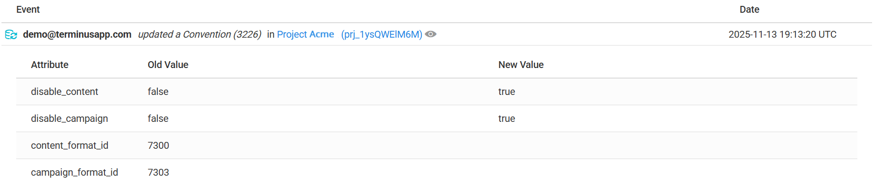 - Attribute: The specific field or setting that was changed (e.g., status, URL, name).