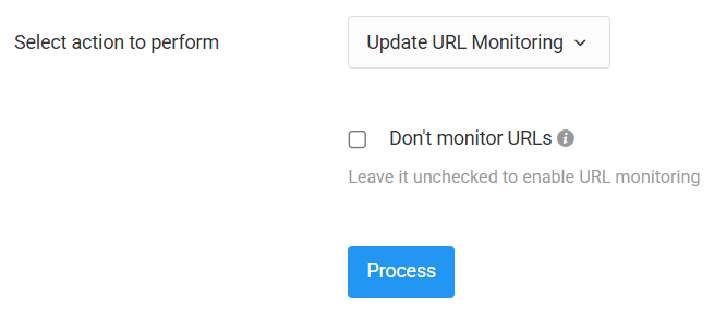 - Select your URLs, then click Bulk Operations > Update URL Monitoring.