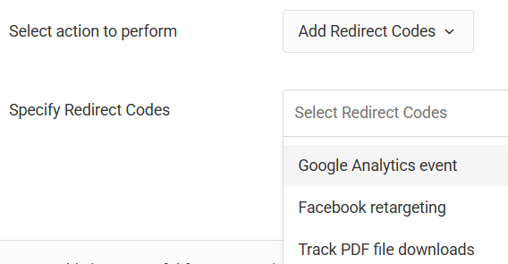 - You will be prompted to select the pre-configured redirect codes you want to apply or remove.