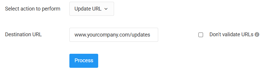 - Select your URLs, then click Bulk Operations > Update URL.